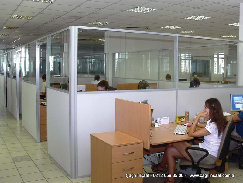 صممت خصيصا لمحات الزجاج والألومنيوم الناقل الرئيسي للاستخدام في النظام. بادئ ذي بدء ، الأماكن التي يتم فيها تقسيم الزجاج بواسطة فرشاة في مكان التثبيت. يتم توصيل المكتب الفاصل المنتج ببعضه البعض عن طريق نظام العنكبوت الذي يتم تكديسه في أجزاء قسم المكتب.